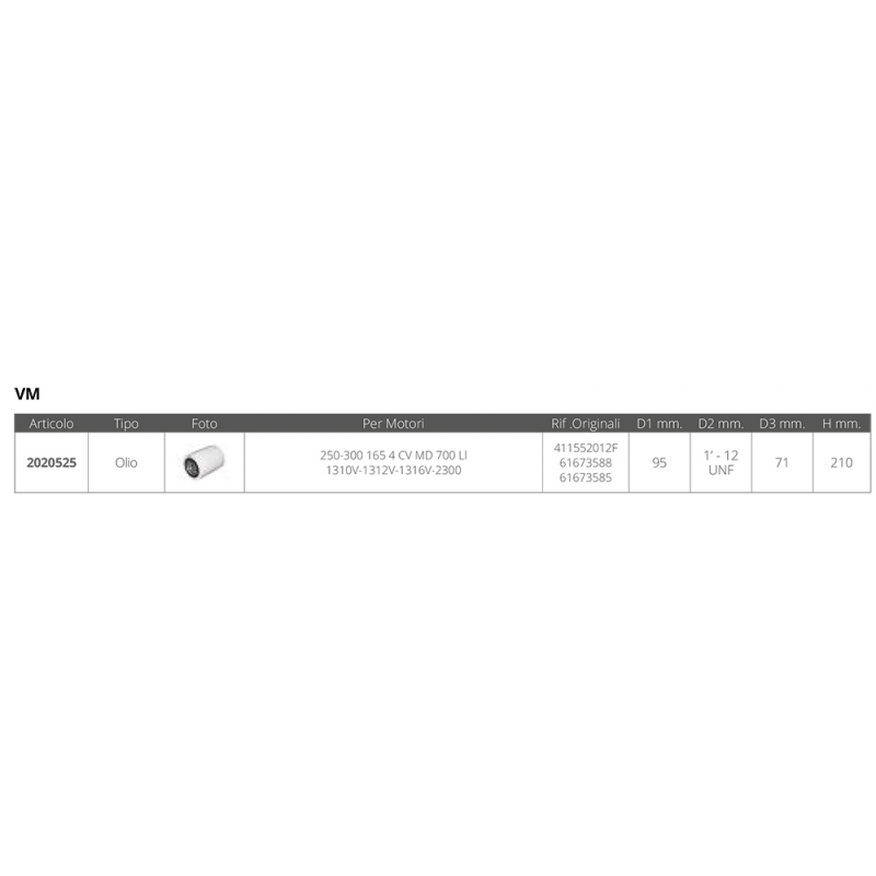 Filtro olio VM 4115.52012F è un componente essenziale per il corretto funzionamento del motore, garantendo la pulizia dell’olio da residui e impurità. La sua efficacia si basa su dimensioni e caratteristiche precise che assicurano una perfetta compatibilità e funzionalità.