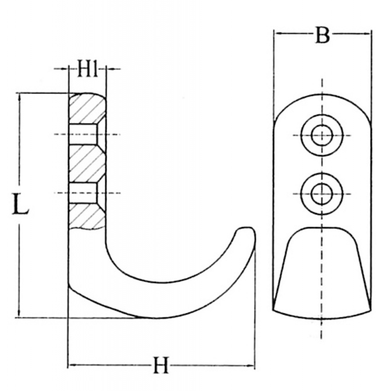 Gancetto in acciaio inox AISI 316, base con due viti di fissaggio.