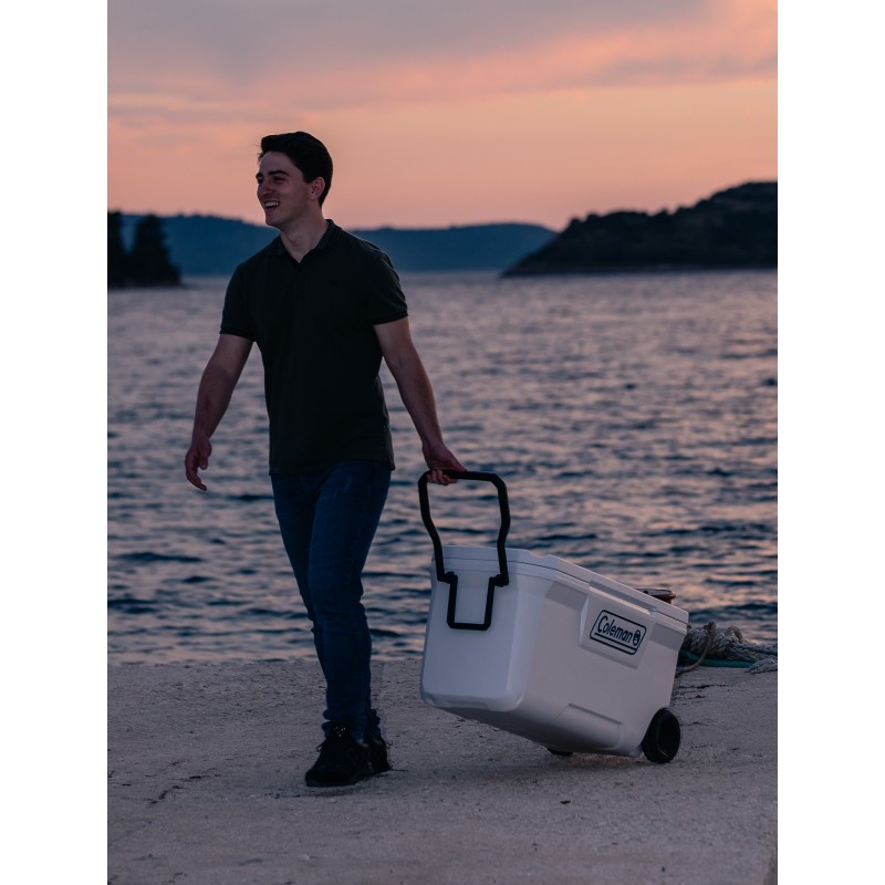 In polietilene ad alta densità con rivestimento di protezione anti UV che previene l’ingiallimento. Due centimetri di materiale isolante in poliuretano mantiene il ghiaccio per giorni con una temperatura esterna di 32°. Con ruote, maniglia per il trasporto e tappo di scarico.