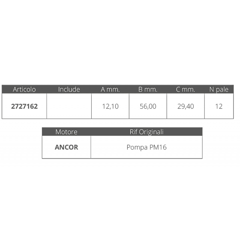 La girante Ancor per PM16 è un componente essenziale per il funzionamento ottimale del tuo dispositivo. Grazie alla sua costruzione precisa e alla presenza di 12 pale, garantisce una performance elevata e una lunga durata nel tempo.