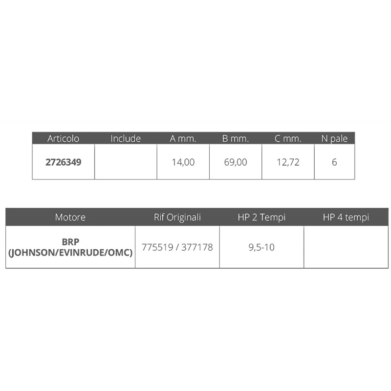 La girante per motori Evinrude 2 tempi da 9.5 a 10HP è un componente essenziale per il corretto funzionamento del sistema di raffreddamento del motore. Questa girante è progettata per garantire una circolazione ottimale dell’acqua all’interno del motore, prevenendo il surriscaldamento e assicurando prestazioni stabili e durature. La sua installazione è semplice e veloce, rendendola una scelta ideale per la manutenzione ordinaria o la sostituzione di giranti usurate. Grazie alla sua costruzione di alta qualità, offre resistenza e affidabilità anche nelle condizioni di navigazione più impegnative.