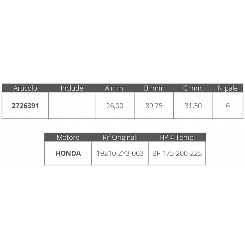 La girante per motori Honda 4T è progettata per offrire prestazioni ottimali su motori da 175 a 225HP. Grazie alla sua costruzione robusta e al numero di pale, garantisce una spinta efficiente e costante, migliorando la navigazione.