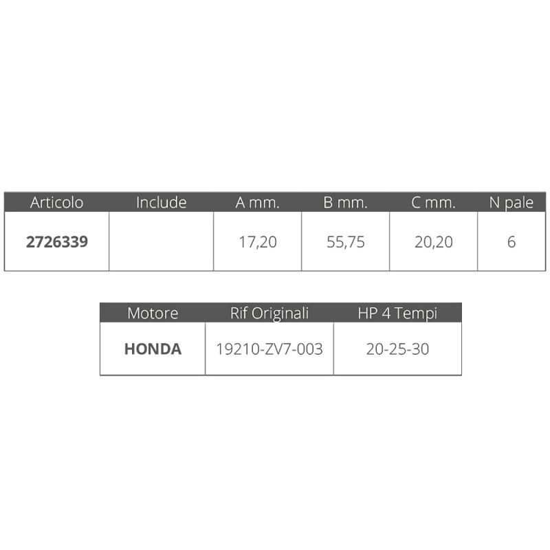 La girante per motori Honda 4T è progettata per ottimizzare le prestazioni dei motori da 20, 25 e 30HP. Grazie alla sua costruzione robusta e al numero di pale, garantisce un flusso d’acqua costante e potente, migliorando l’efficienza del motore e riducendo il rischio di surriscaldamento. La girante è un componente essenziale per il mantenimento della salute del tuo motore marino, assicurandoti navigazioni sicure e piacevoli.