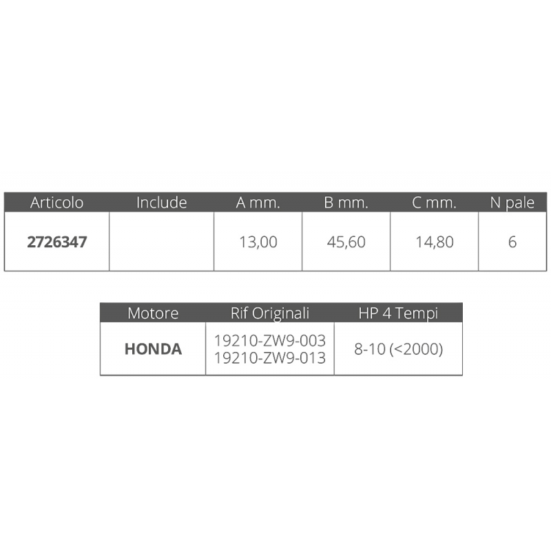 La girante per motori Honda 4T da 8-10HP è un componente essenziale per il corretto funzionamento del motore. Questa girante è progettata per garantire una perfetta compatibilità e prestazioni ottimali. Grazie alla sua costruzione robusta e al numero di pale, assicura una circolazione efficace del liquido di raffreddamento, prevenendo il surriscaldamento del motore e prolungandone la vita utile.