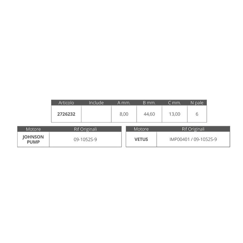 La girante Johnson 09-1052S-9 è un componente essenziale per il corretto funzionamento delle pompe. Grazie alla sua costruzione robusta e al design ottimizzato, garantisce prestazioni elevate e una lunga durata. La girante è dotata di 6 pale, che permettono un flusso costante e potente, ideale per una vasta gamma di applicazioni.