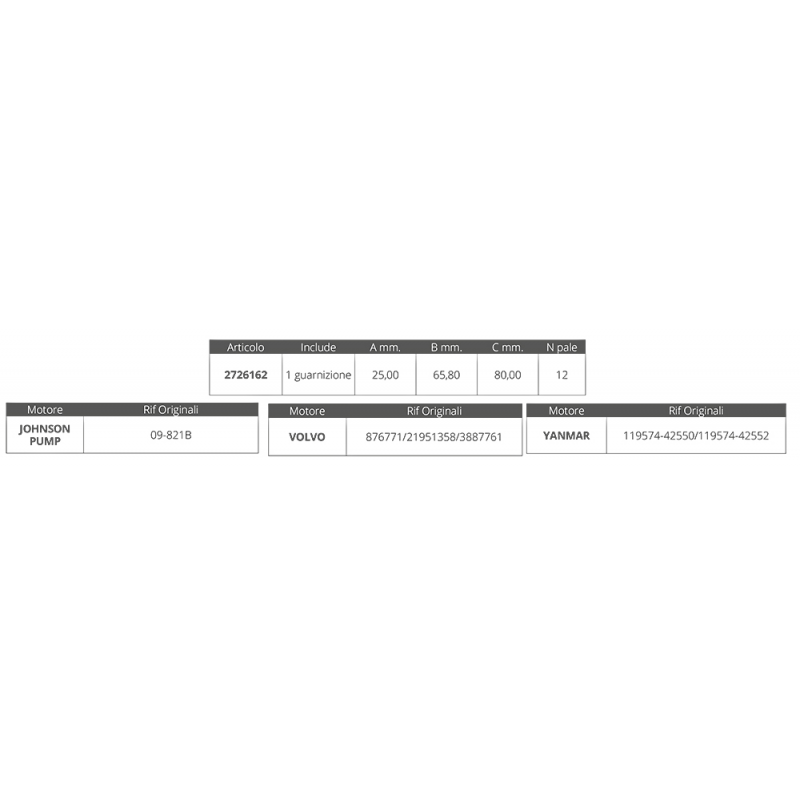 La girante Johnson 09-821B è progettata per offrire prestazioni ottimali grazie alla sua struttura robusta e alle sue 12 pale. Questo componente è essenziale per il corretto funzionamento di sistemi di pompaggio e altre applicazioni che richiedono una girante di alta qualità.