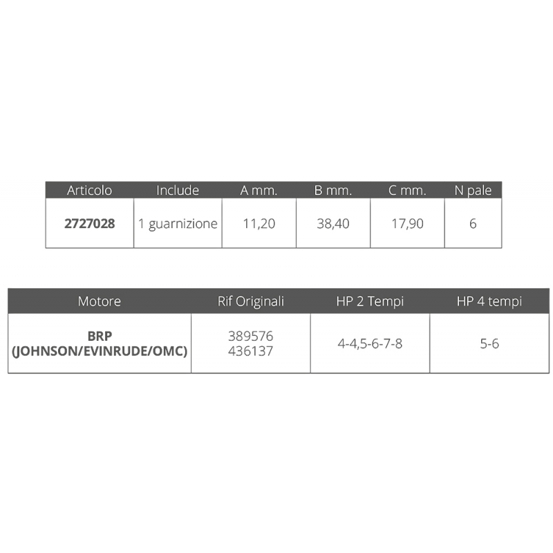 La girante per motori Johnson/Evinrude da 2/4 tempi e 4/8 HP è un componente essenziale per il corretto funzionamento del motore. Questa girante è progettata per garantire una perfetta compatibilità e prestazioni ottimali. Grazie alla sua costruzione robusta e al materiale di alta qualità, assicura una lunga durata e resistenza. è dotata di 6 pale che permettono un flusso d’acqua costante e potente, essenziale per il raffreddamento del motore. La sostituzione della girante è un’operazione di manutenzione ordinaria che contribuisce a mantenere il motore in buone condizioni e a prevenire danni maggiori.