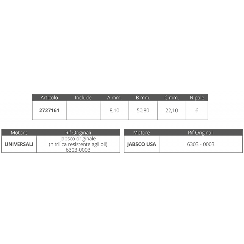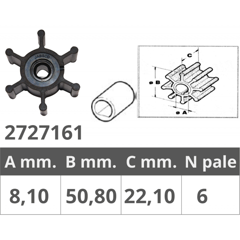 Girante Jabsco originale (nitrilica resistente agli oli) per pompe di sentina.
