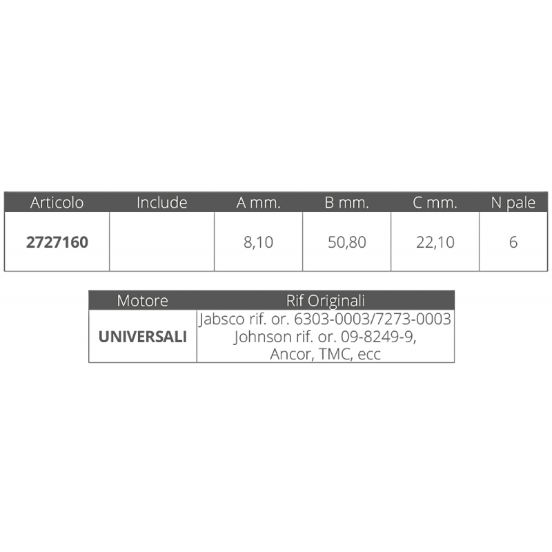 Girante pompa sentina. Jabsco rif. or. 7273-0001-0003/6303-0001Johnson rif. or. 09-8249-9,Ancor, TMC, ecc