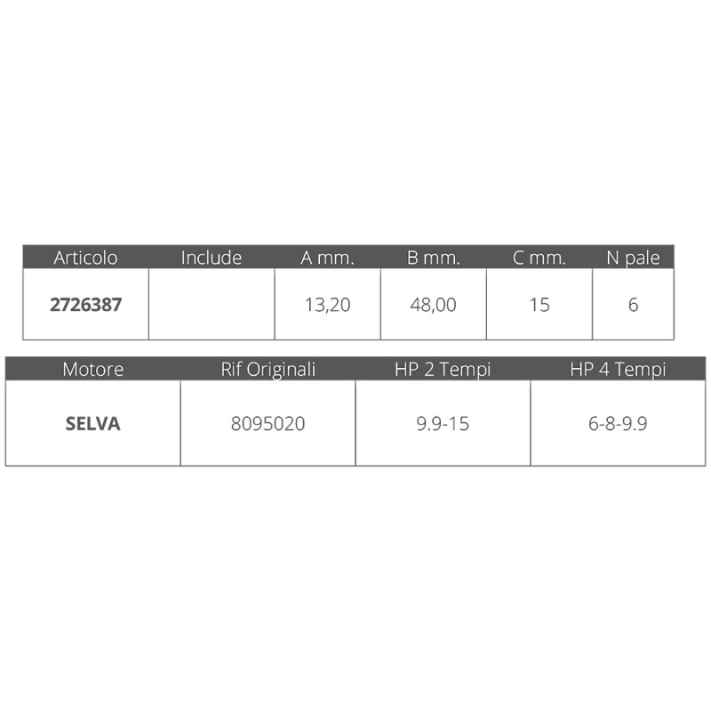 GIRANTE SELVA R.O.8095020 è un componente essenziale per il corretto funzionamento di motori marini, garantendo efficienza e affidabilità. Grazie alla sua progettazione accurata e alla scelta di materiali di alta qualità, questa girante assicura prestazioni ottimali in ogni condizione di utilizzo.