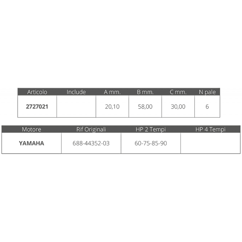 La girante per motori Yamaha 2T da 75-85-90 HP è un componente essenziale per il corretto funzionamento del sistema di raffreddamento del motore. Questa girante è progettata per garantire una circolazione ottimale dell’acqua all’interno del motore, prevenendo il surriscaldamento e assicurando prestazioni elevate e una lunga durata del motore. La girante è dotata di 6 pale robuste che garantiscono un flusso d’acqua costante e efficiente.