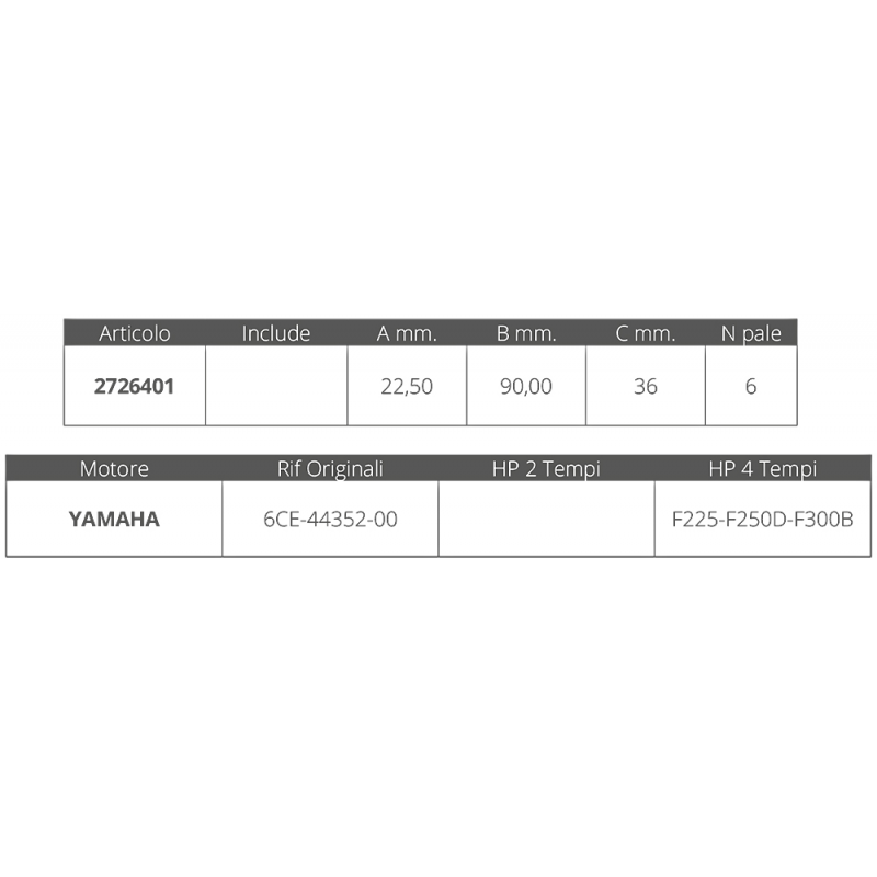 Girante per Yamaha, modello di riferimento originale 6CE-44352-00, dotata di 6 pale per garantire prestazioni ottimali.