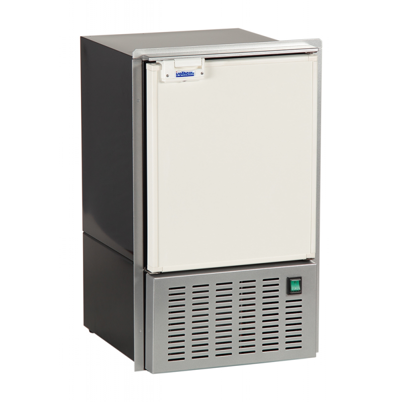 Produttore automatico di ghiaccio bianco a mezza luna con ventilazione frontale e predisposizione per il collegamento all’impianto idrico di bordo