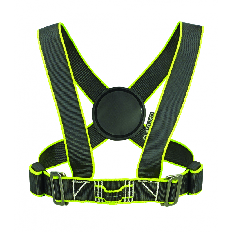 Imbracatura di sicurezza ergonomica con doppia regolazione, spalle e ventre da cm. 80 a 130. Larghezza cinghie mm. 45. Anello in tessile con tenuta di 2.040 kg. con finiture retroriflettenti.