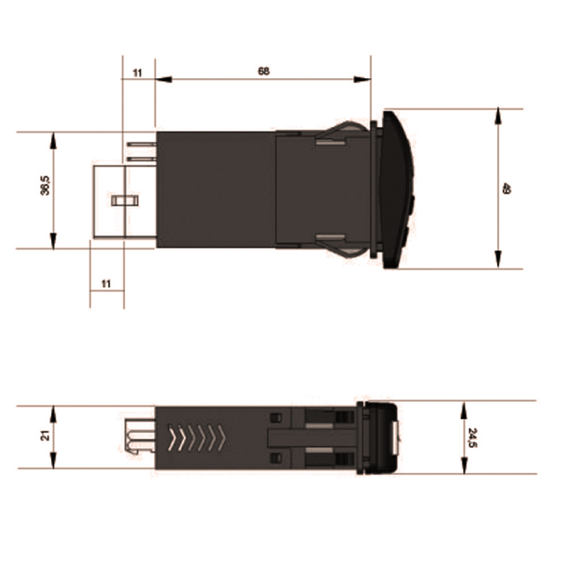 Interruttori intelligenti universali per la gestione di due tergicristalli. Uguali ai carlingswitch come dimensioni e aspetto, retroilluminazione a LED acceso-spento, sincronizzazione automatica, possibilità di selezionare l’uno o l’altro dei tergicristallo, 3 livelli di intermittenza indicati dai LED, 1 o 2 velocità (dove previste dal tergicristallo), parcheggio automatico, programma lavaggio automatico