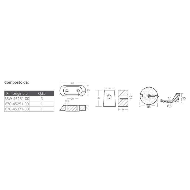 Kit anodi in alluminio per motori Yamaha fuoribordo 40-60 hp