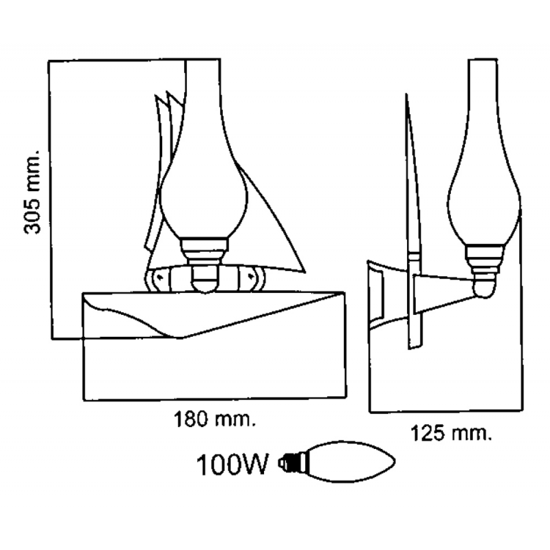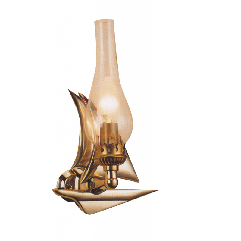 Lampada elettrica con veliero in ottone, fissaggio a parete.