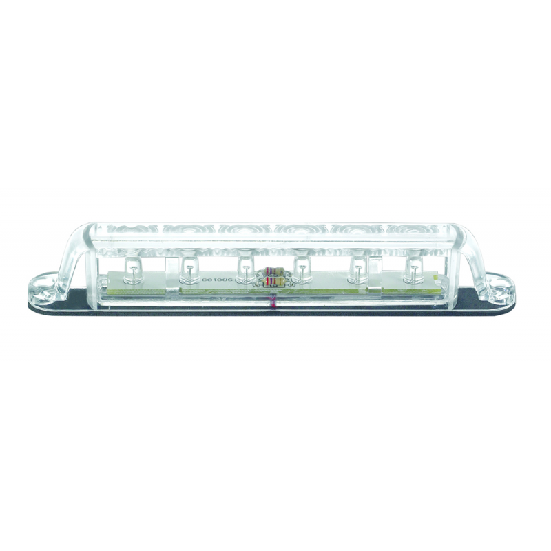 Luce di cortesia a 6 led in plastica, luce bianca naturale, resistente agli spruzzi. Montaggio a filo.