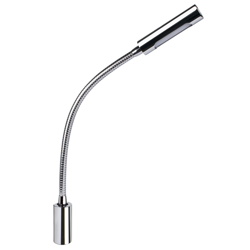 Luce da lettura stagna IP 40, flessibile, fabbricata in acciaio inox AISI 316, dotata di interruttore touch che aziona due tipi di illuminazione, bianca naturale e rossa, a 6 + 2 RED POWER LED (110 LUMEN). Sensibile alla polarità. Fissaggio a parete con viti.