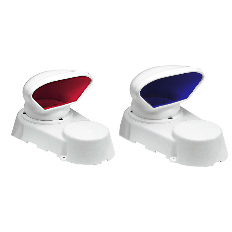 Presa aria Dorade composta da base in ABS rigido e da manica a vento in morbido PVC bianco lucido, interno colorato di blu o rosso, coperchio avvitabile, tappo e boccola di protezione. Completamente impermeabile e anti raggi UV.