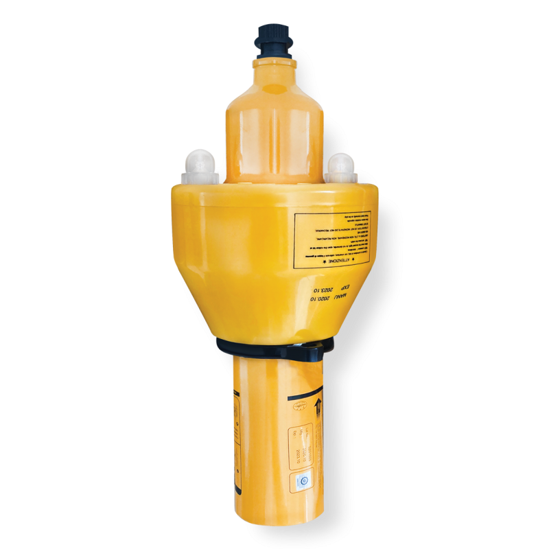 Segnale fumogeno arancione con luci ad attivazione automatica per l’uso in qualsiasi situazione di emergenza uomo in mare. Conforme Solas 74/88, Marine Equipment Directive 2002/75/EC, Res. MSC. 48 [66]- MSC 81[70].