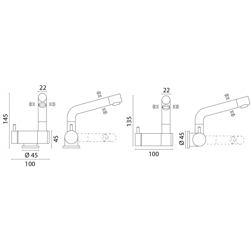 Rubinetto miscelatore monoforo per lavabo abbattibile. Fornito completo di flessibili da 3/8’ femmina.
