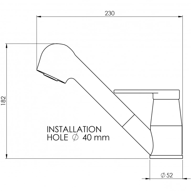 Rubinetto miscelatore monocomando, con doccia estraibile cromata, tubo flessibile in ottone cromato. Attacco femmina 2x1/2”