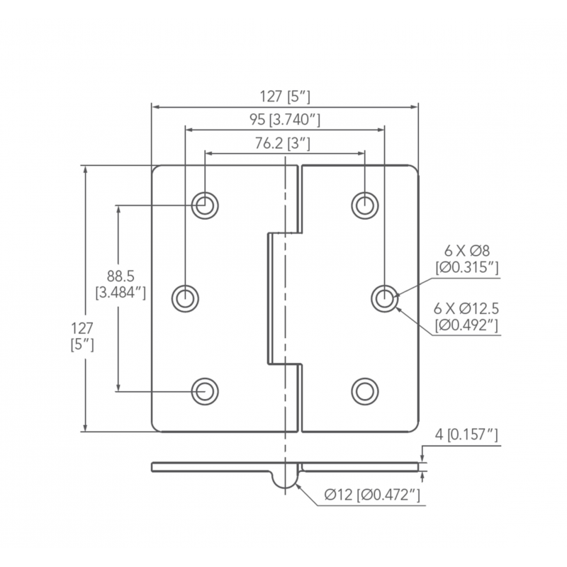 Cerniera in acciaio inox AISI 316 lucidato a specchio.