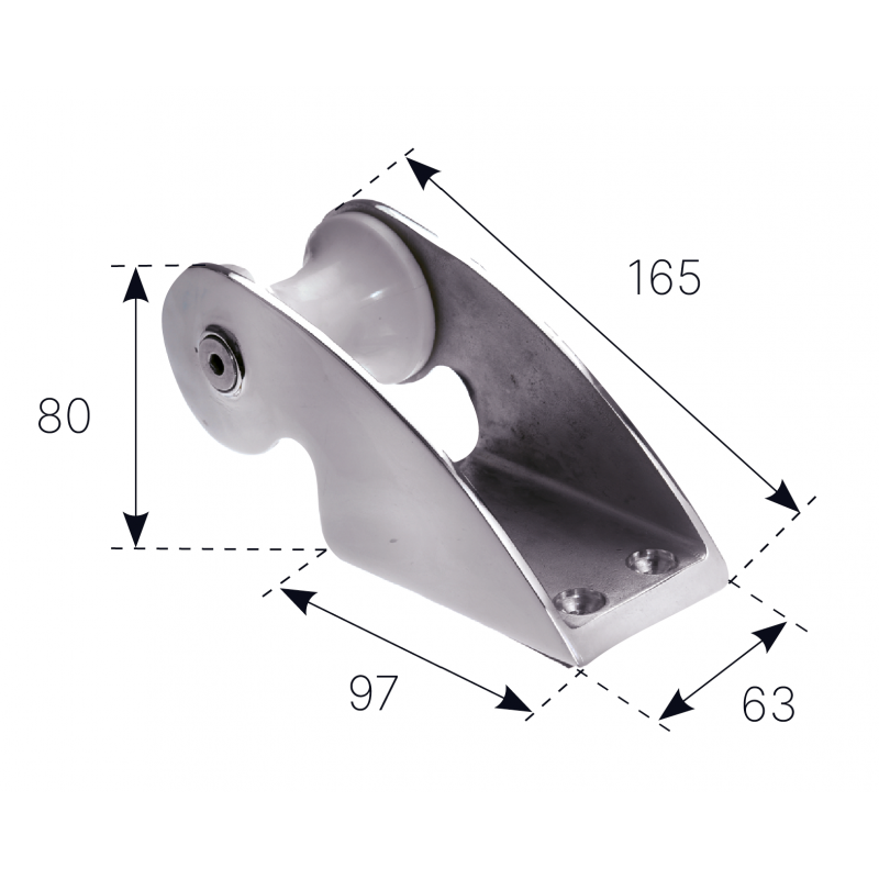 Musone di prua in acciaio inox con puleggia in nylon per canotti pneumatici e piccole imbarcazioni.