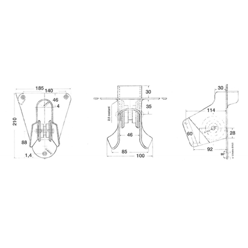 Musone di prua in acciaio inox AISI 316 montaggio ad incasso nella delfiniera di gommoni e piccole imbarcazioni.