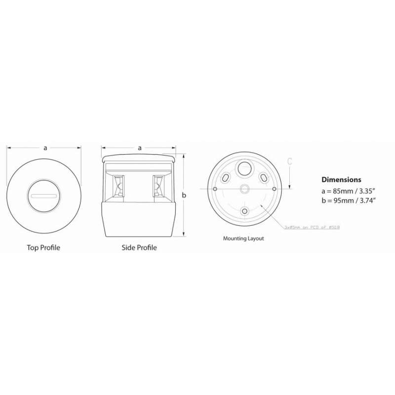 Fanale a led con luce di sinistra, dritta e poppa combinati, più luce di fonda da accendere con un altro interruttore. In nylon resistente ai raggi UV e gli urti, attacco per fissaggio su asta in acciaio inox. Lenti in Grilamide e cassa stagna IP67 in materiale antishock resistente a corrosione e raggi UV. Consumo ultra basso, con 40 cm di cavo marino precablato, dotato di circuito di protezione per picchi di tensione e inversione di polarità. Multivolt 9/33V. Certificati BSH, IMO Col Reg 72, USCG, ABYC A-16, Maritime NZ. Rif. Originale 2LT 980 650-001