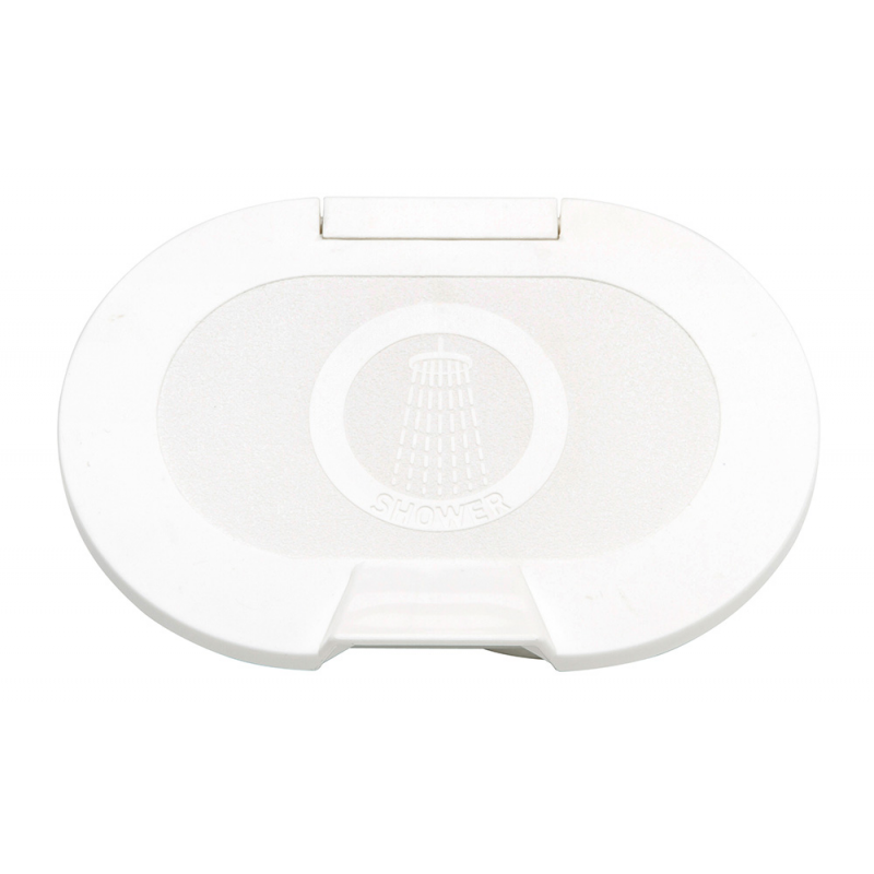 Contenitore in ASA bianco resistente ai raggi UV per doccette e rubinetti miscelatori.
