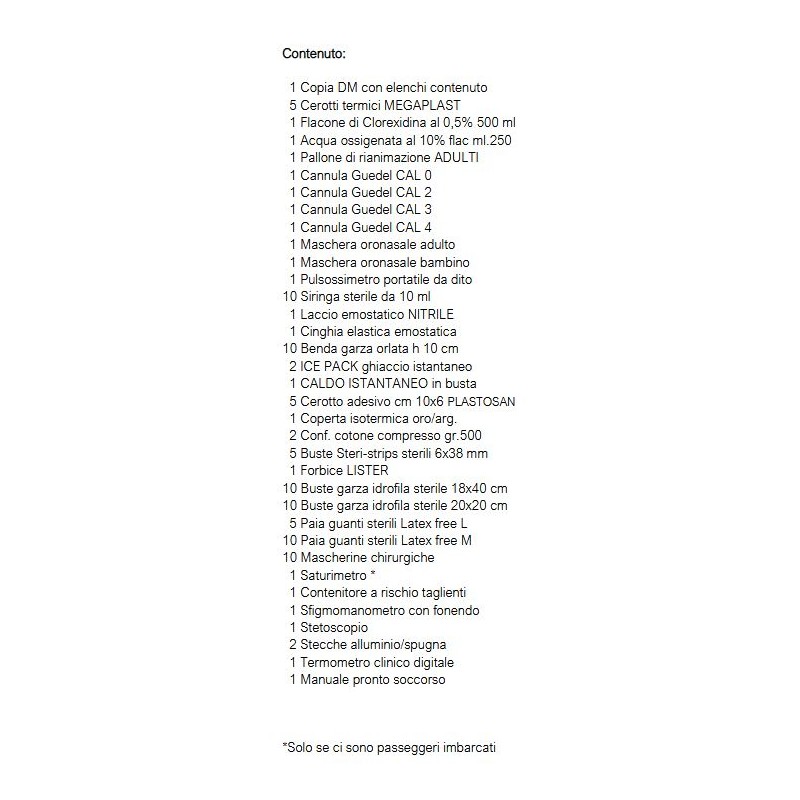 Package completo del materiale sanitario che deve far parte della dotazione di bordo come da nuovo D.M. 10/03/2022 TABELLA A