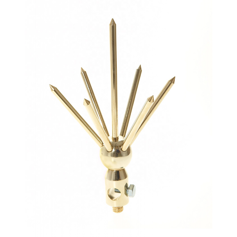 Il parafullmine a sette punte è realizzato in ottone. Questo dispositivo è progettato per essere installato nella posizione più alta possibile e si collega a terra attraverso un cavo di discesa. Dispone di un foro per il passaggio del cavo.