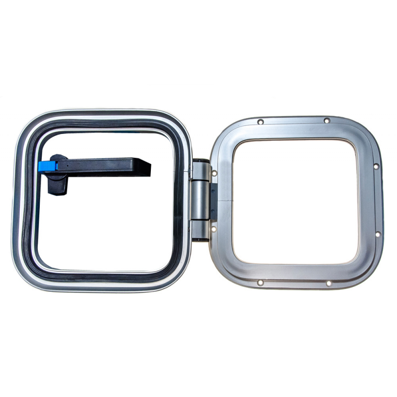 Passo uomo modello piano senza flangia interna, raggio mm. 30 in lega leggera anodizzata. Lo stile, il colore, la finitura e la qualità fanno della GEBO l’azienda leader del mercato. I passi uomo sono tutti corredati di un sistema di chiusura interna ed esterna: bloccata dall’interno è a prova di furto, lasciata in posizione leggermente aperta permette di avere una ventilazione anche mentre l’equipaggio riposa o a barca incustodita. La scanalatura presente nella base evita l’ingresso d’acqua. Guarnizioni in neoprene, cerniere e maniglie sono realizzate con materiali anticorrosione. Le cerniere regolabili permettono l’apertura desiderata fino a 180°. I prodotti Gebo sono costruiti a norme CE e ISO e approvati Lloyd’s Register.