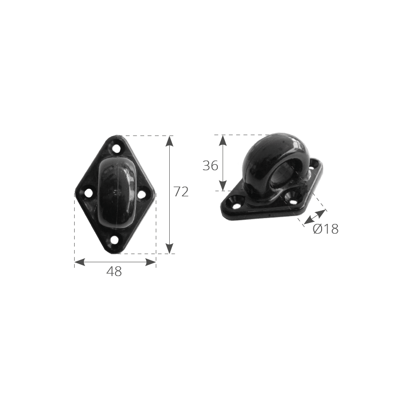 Piastra in Nylon con ponticello, 4 fori di fissaggio, Colore nero.
