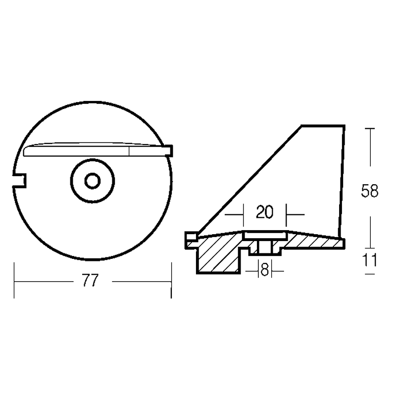 Pinna in zinco per motori 25-50HP 2T, 25-30HP 4 (rif. or. 3B7-60217-0)