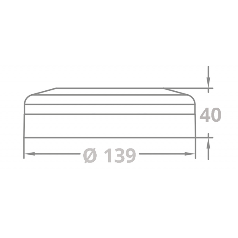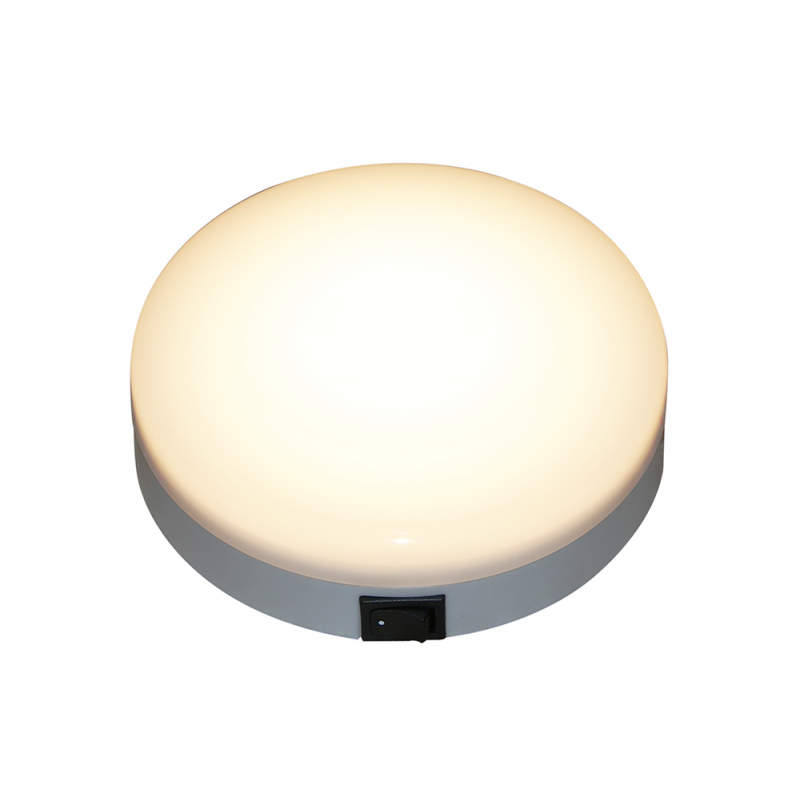 Plafoniera realizzata in plastica, luce bianca calda resistente agli spruzzi. Lumen 85.