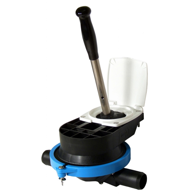 Pompa a membrana JABSCO per montaggio attraverso paratia o coperta. Maniglia in acciaio inox. Adescante fino a mt 5. Portata Lt./min 50, portatubo ø mm. 25.
