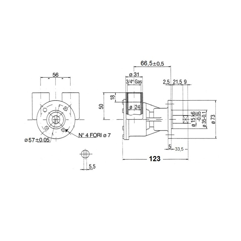 Pompa autoadescante in bronzo, bocche da 3/4, portata It./min. 21/56 per motori Nanni, Beta Marine. Girante di ricambio art.2727105