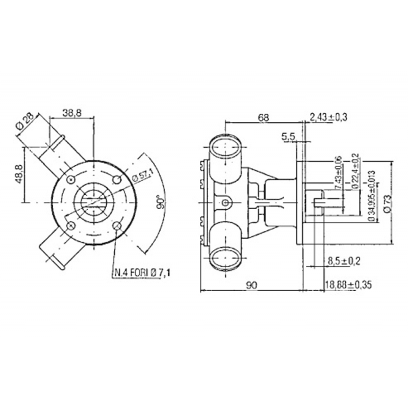 Pompa autoadescante in bronzo, bocche ø mm. 28, portata It./min. 21/56 per motori Aifo, SoléM636, SM636, VM 804M, 806M, Volvo MD22, Perkins, Ford, Mercedes. Girante di ricambio art.2727105