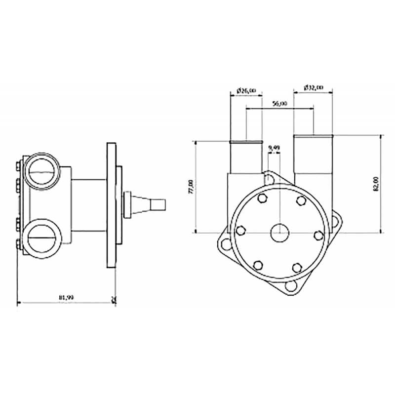 Pompe autoadescanti in bronzo, per raffreddamento motori. Bocche da mm.26 e mm.32, portata It./min. 10/69 per motori Volvo D2-55A/ D2-55B/ D2-55C/ D2-55D/ D2-55E/ D2-55F. Girante di ricambio art.2727105