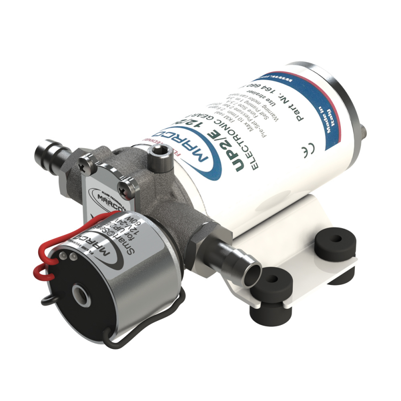 Pompa autoclave UP2/E a ingranaggi elicoidali in PEEK, valvola di non ritorno, controllo elettronico, il motore gira progressivamente per raggiungere la portata richiesta. Fusibile (non compreso) da 7,5A