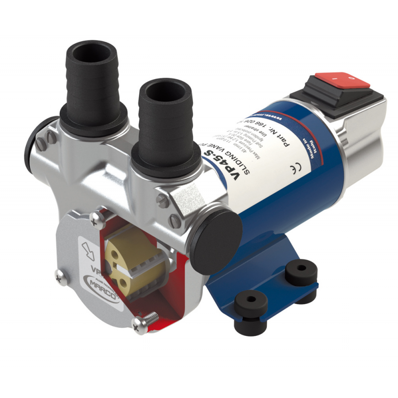 Pompa a palette autoadescante dotata di interruttore ON-OFF integrato, valvola by-pass, corpo in alluminio con doppia possibilità di connessione. Ideale per cicli di lavoro continuativi.