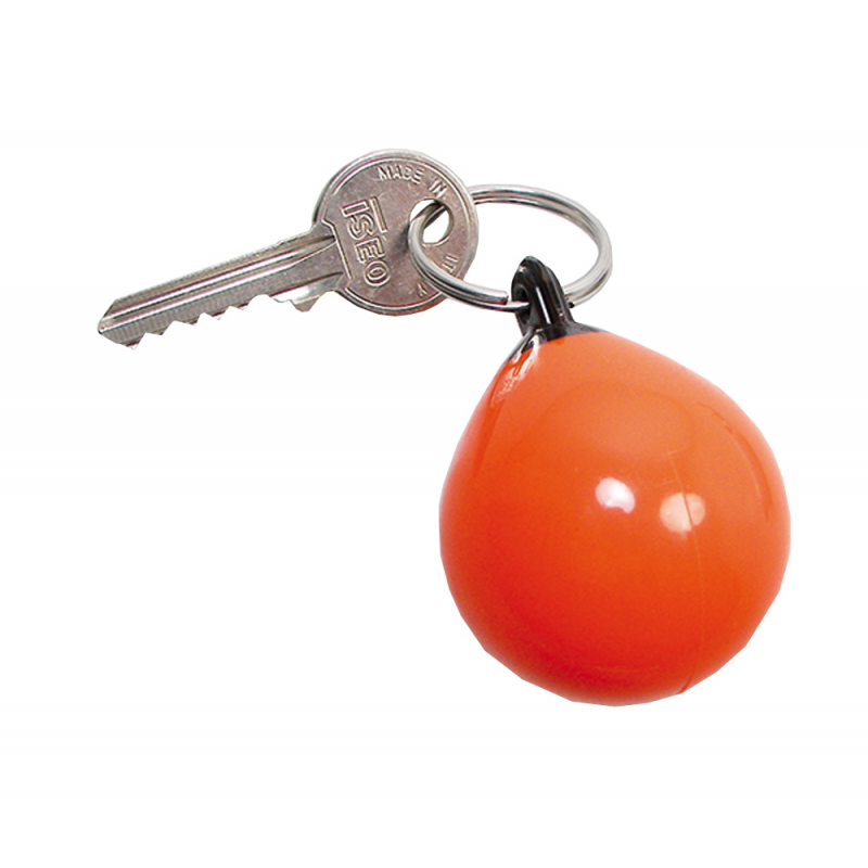Portachiave in PVC morbido di forma ”a pera”, con corpo di colore arancio e calotta nera. Confezione 10 pz.
