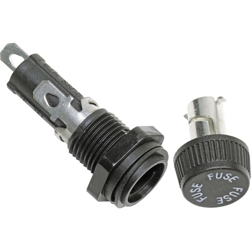 Porta fusibile stagno da pannello per fusibili in vetro, portata massima 20A. Foro ø mm 12,7. Rif. originale 5021