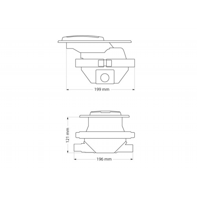 Costruita in polipropilene con rinforzi in fibra di vetro e nylon. Progettata per l’installazione in spazi ristretti grazie alla bassa profondità di installazione di soli 120 mm. Le bocche di entrata e di uscita sono ruotabili a 360°. Può essere utilizzata anche per il travaso del gasolio ed è fornita completa di maniglia e sportellino a scatto