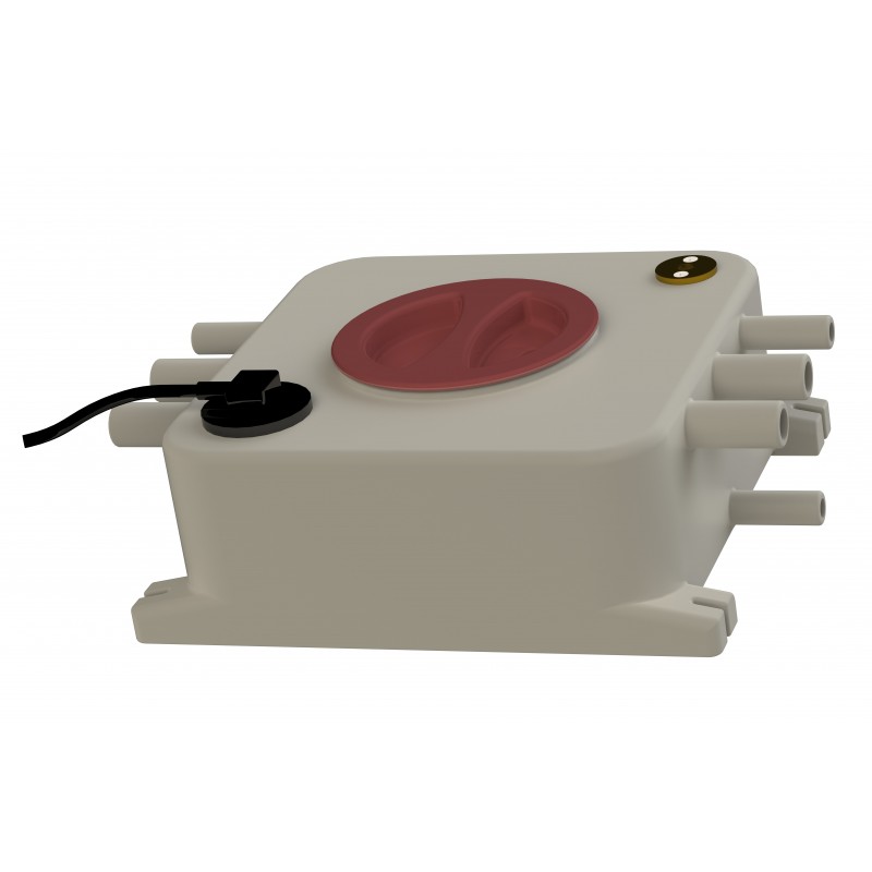 Pozzetto di raccolta acque grigie completo di 6 attacchi in entrata e di 2 raccordi in uscita. Il modello 2324314 è dotato di interruttore di massimo livello e spegnimento ritardato per consentire il totale svuotamento dei liquidi rimasti nelle tubazioni.