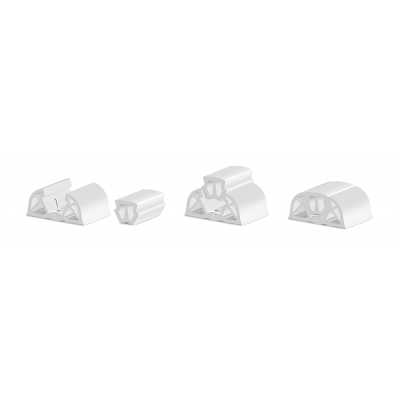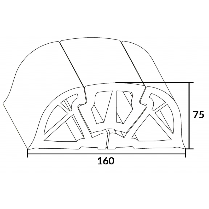 Profilo in PVC che coniuga una elevata potenza ad una assoluta leggerezza. Concepito con una triplice struttura in pvc con ampie camere d’aria interne, raggiunge una elevata capacità di assorbimento agli urti mai raggiunta prima. Il profilo di base composto da tre pezzi è fissato con l’ausilio di una barra di acciaio preforata e svasata (art. 6566125/6). Il profilo di colmo è posizionabile a pressione. Colore bianco.