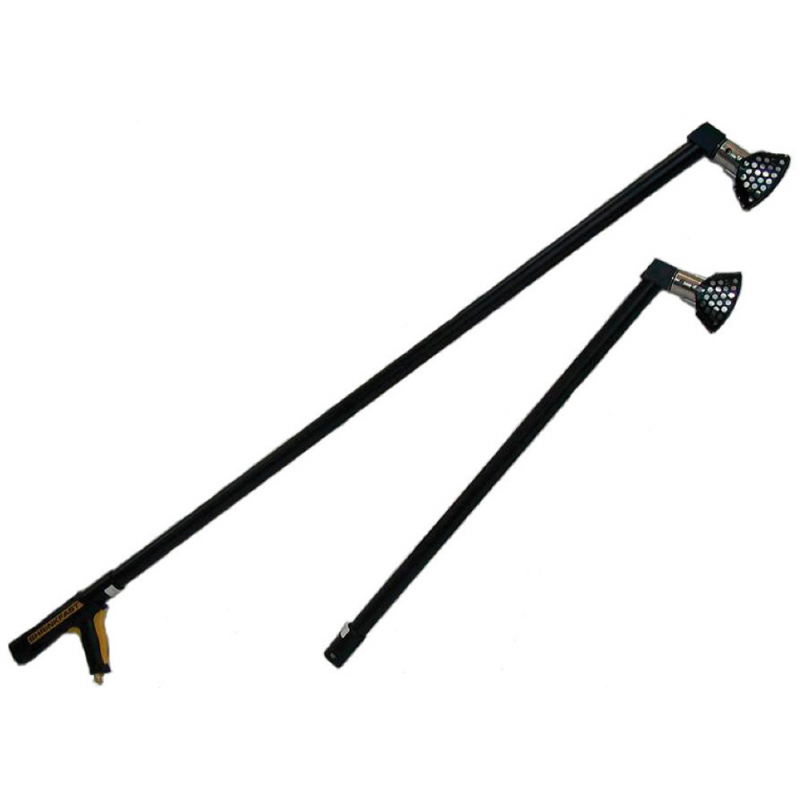 Prolunga dotata di sistema di aggancio a pulsante per collegarsi e scollegarsi dalla pistola e di raccordo ad angolo di 75° per la compattazione del telo nelle parti più lontane e difficili da raggiungere